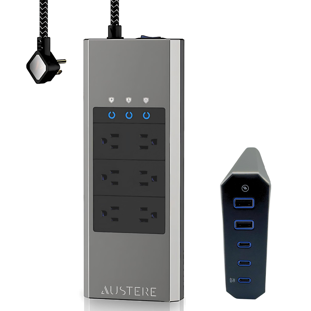 Securing a dependable and safe method for charging all our devices is essential. Austere Surge Protectors have been designed with you, your family, and your home in mind. Austere Power seamlessly complements and safeguards your household devices.